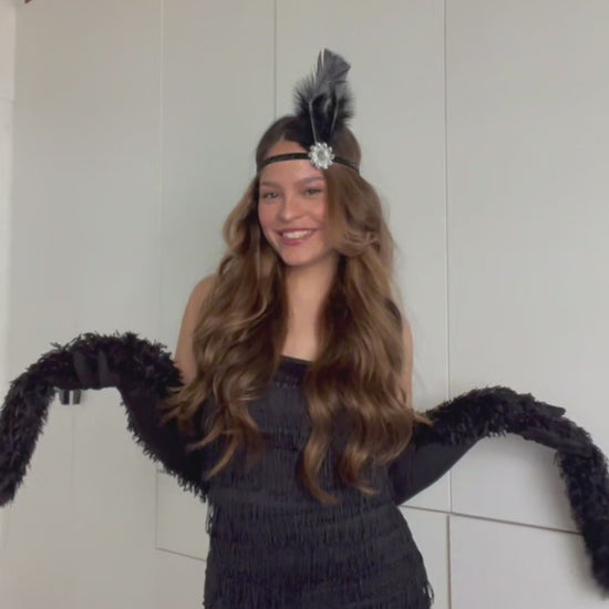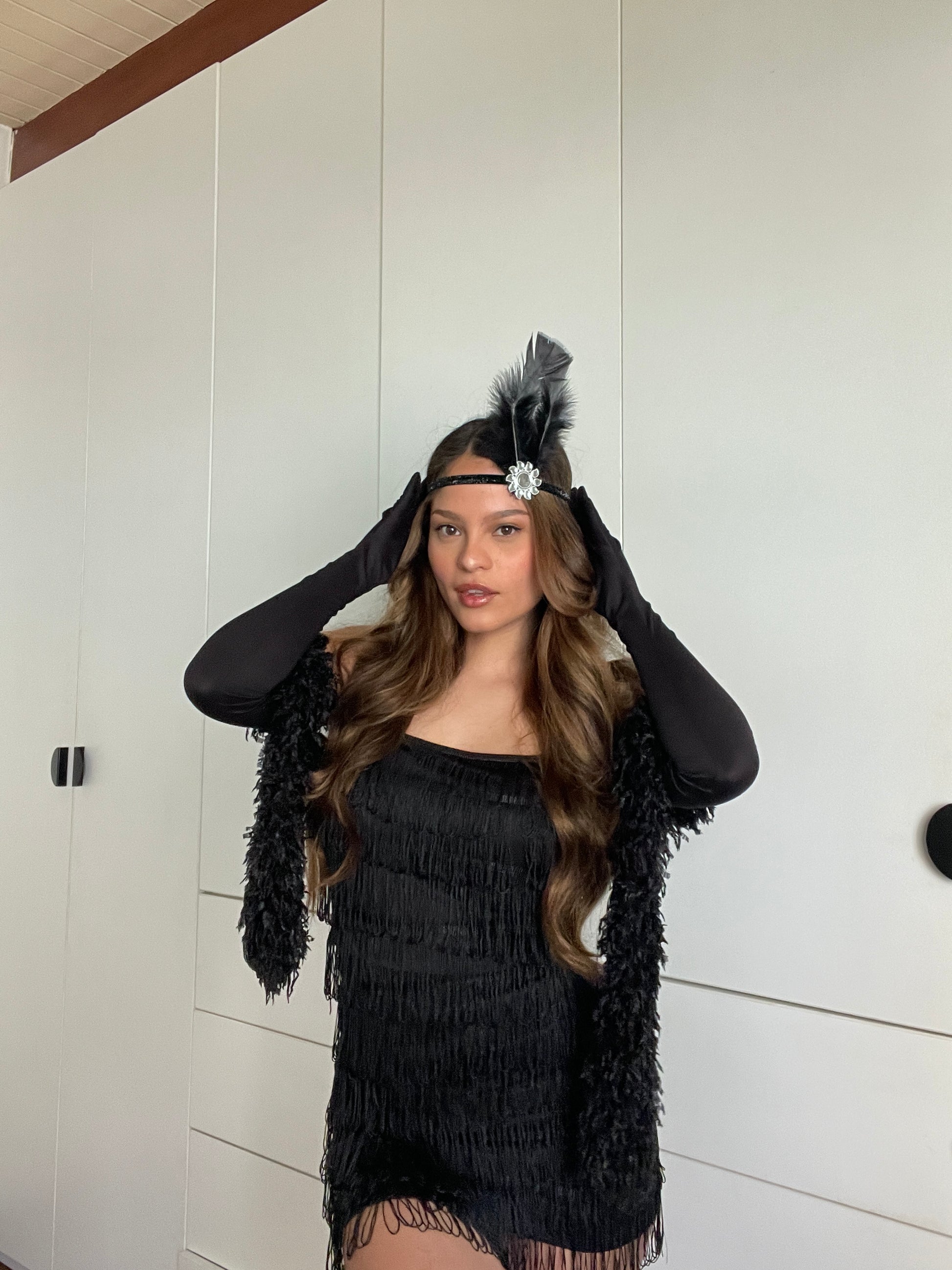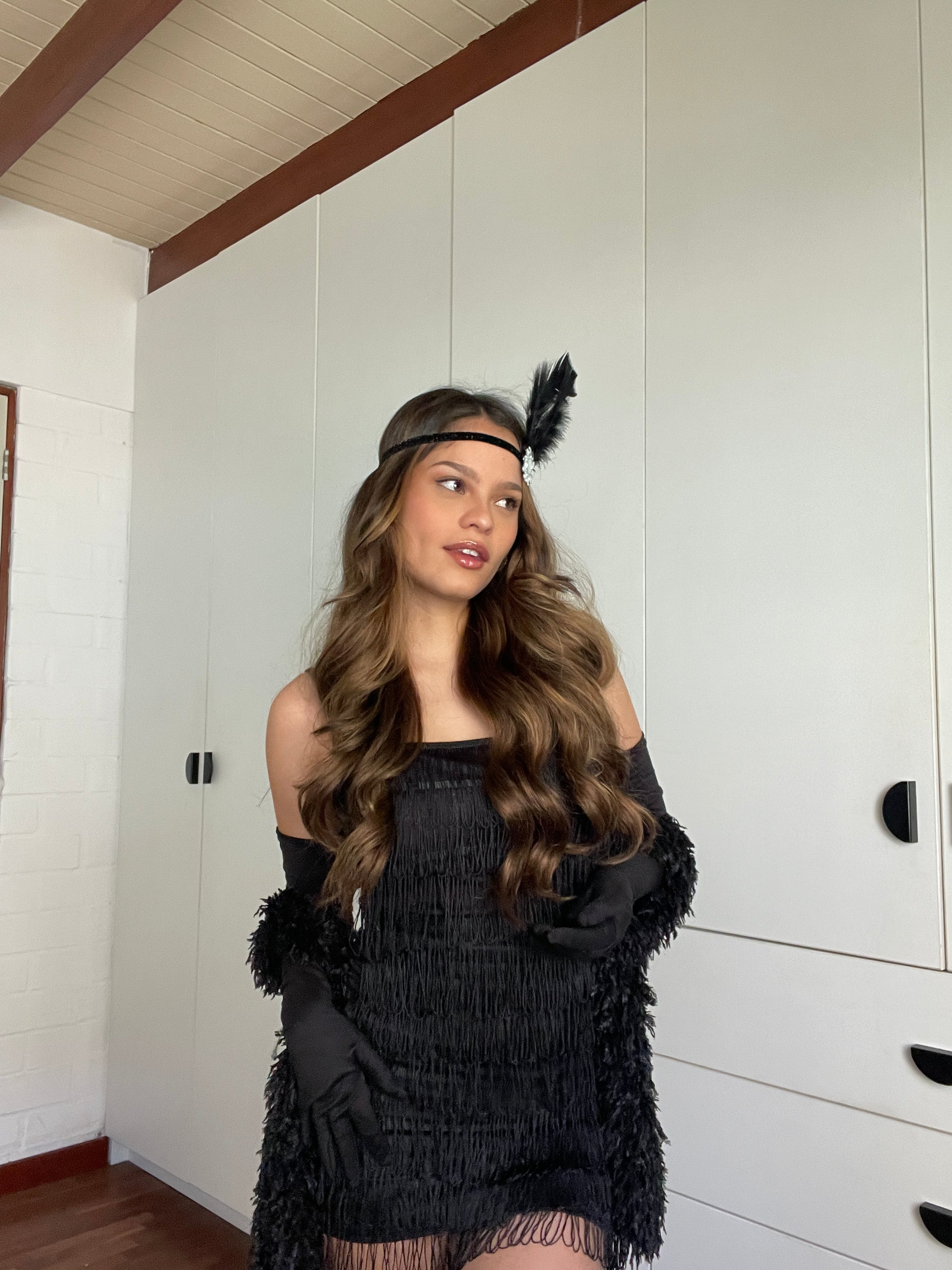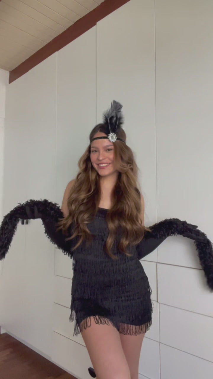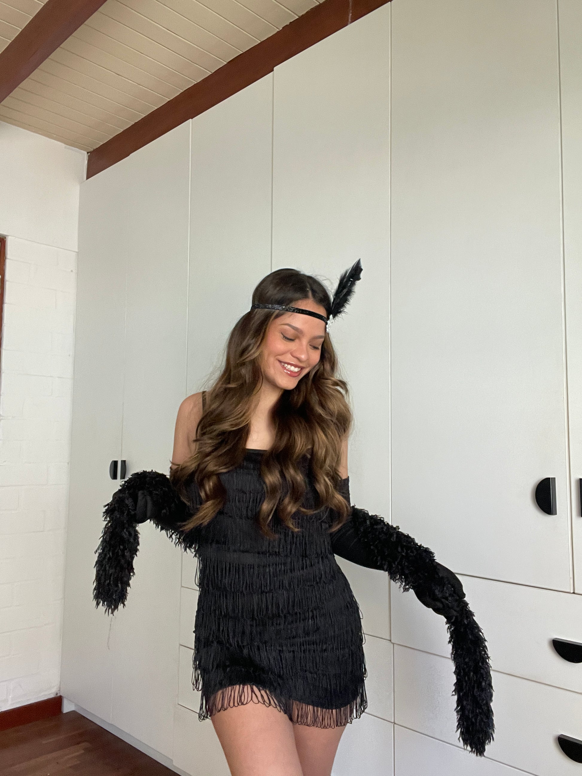 Disfraz incluye todo lo de la foto (5 prendas) vestido, guantes, chalina de plumas, vincha